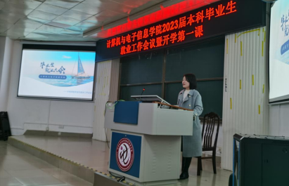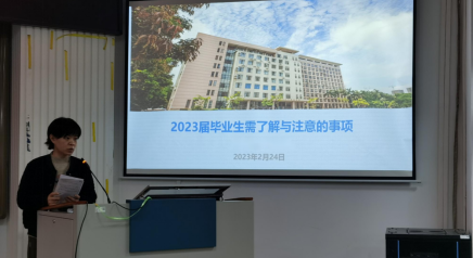 2023年2月24日下午,太阳成集团tyc122cc在214报告厅召开2023届本科毕业生就业工作会议暨开学第一课。公司党委副书记邓珍琪老师、公司辅导员杨洋老师和李易明老师、公司教学办公室甘瑜萍老师和罗程老师,以及公司全体2023届本科毕业生参加会议。会议由邓珍琪老师主持,会议主题是“顺利完成学业,尽快落实就业单位”。