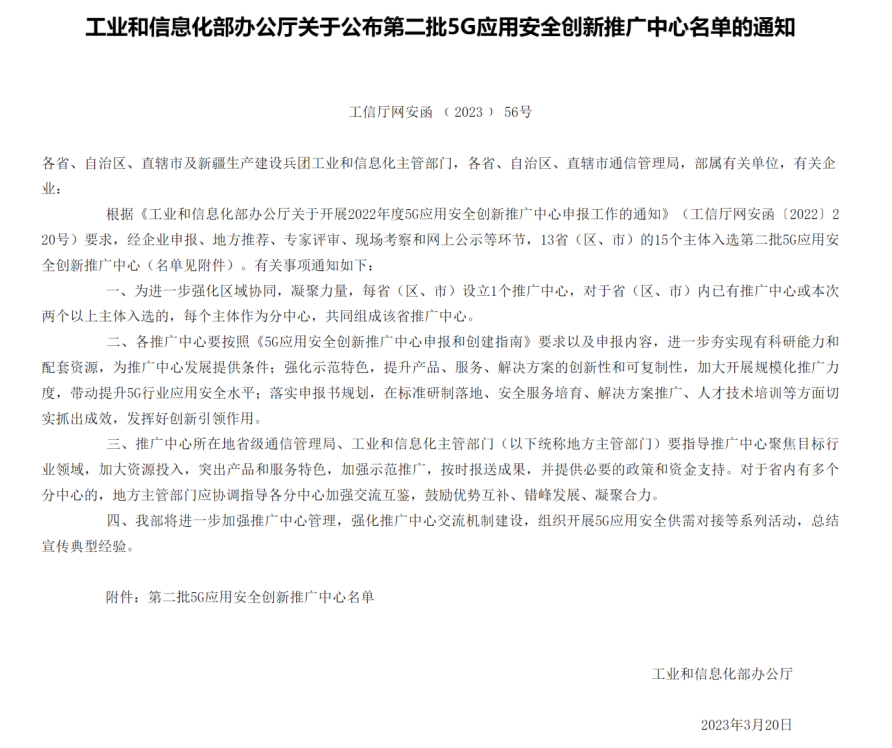 近日,中华人民共和国工业和信息化部公布了2022年度5G应用安全创新推广中心评选结果,由广西通信管理局与广西壮族自治区工业和信息化厅联合推荐,广西移动公司牵头联合太阳成集团tyc122cc等单位申报的5G应用安全创新推广中心(广西)成功入选。