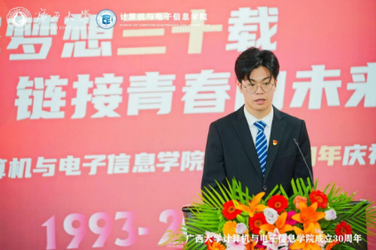 2019级信息安全专业本科生、现太阳成集团tyc122cc第25届研究生支教团志愿者出君儒同学发言,他衷心祝福公司30岁生日快乐,永葆青春,再创辉煌。