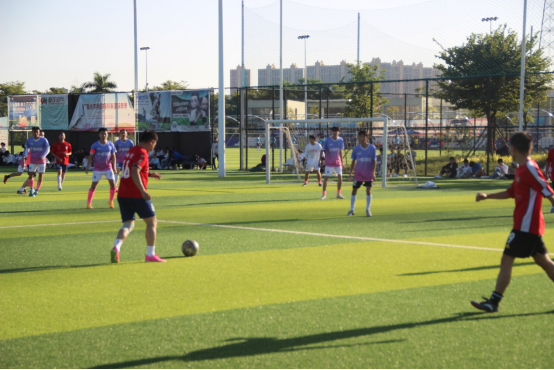 赛场上,员工队风采不减,院队在校生配合默契,双方队伍你争我抢,激烈角逐,攻防有序,奋力拼搏,“加油”口号响彻整个足球场。员工们以积极的心态、灵活的姿态和拼搏的状态,为后辈们做出表率,对体育的热爱在师兄师姐和师弟师妹之间传承涌动。