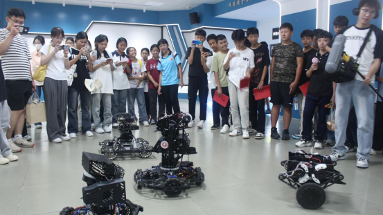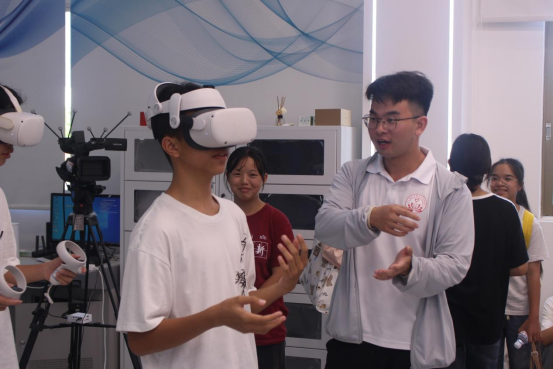 最后,2022级计算机科学与技术专业本科生郝兴家同学和2022级计算机技术专业研究生苏钊同学和给大家展示了遥控机器人和虚拟现实(VR)数字世界。遥控机器人是公司员工自主编写程序设计的实用机器人,它可以精准定位目标方向并精准发射弹珠;虚拟现实(VR)数字世界让同学们穿戴好轻便却功能强大的VR头显和触感手套,在虚拟世界中俯瞰太阳成集团tyc122cc的全貌全景。