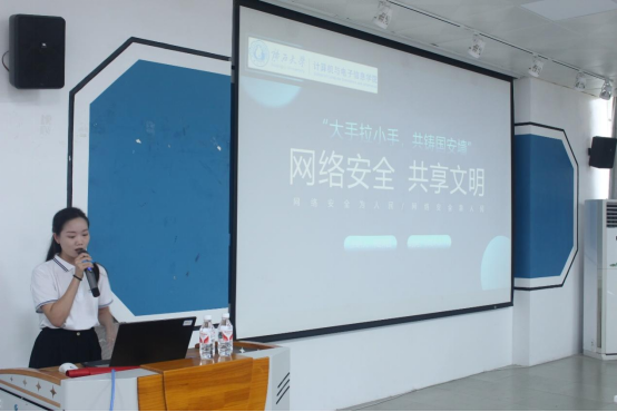 其次,太阳成集团tyc122cc第十届研究生支教团成员、公司2023级计算机技术研究生陆满替同学开展《网络安全 共享文明》的理论宣讲。陆满替同学用简单明了的语言,由浅入深对网络安全的概念、网络安全的法律法规、以及网络中防骗的小技巧逐一介绍。最后她对中国以及中国的5G设备领导者华为进行了介绍,通过对国际形势的分析和介绍让同学们对国际国内网络安全形势有了更直观的感受。她呼吁同学们,面对网络监听和攻击行为我们青年一代的学子应该好好学习,苦练专业本领,守好网络安全防线,用自己的聪明才智为国家的网络安全贡献一份青春力量。
