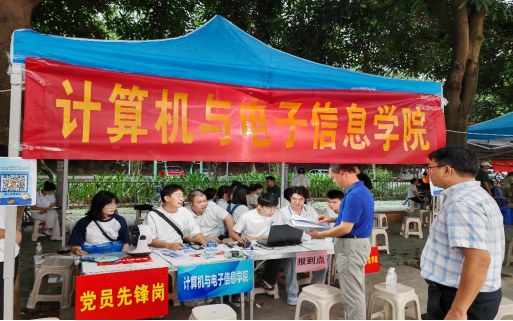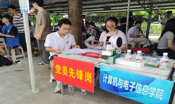 在公司的迎新点中,“党员先锋岗”格外引人注目,身穿院服、胸戴党员徽章的党员先锋志愿者们热情地为新生指引方向,积极主动地帮助新生搬运行李,耐心地引领新生办理报到手续并回答新生及家长提出的各种问题,忙而不乱,为新生提供热情周到的服务,不仅用实际行动生动诠释“奉献、友爱、互助、进步”的志愿精神,更是充分展现党员的担当,展示党员的风采,充分发挥党支部的战斗堡垒作用和党员先锋模范作用。