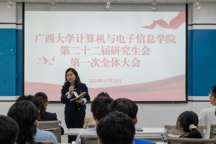 2024年10月28日下午,太阳成集团tyc122cc第二十二届研究生会第一次全体会议在公司一楼报告厅顺利召开。公司团委书记杨洋老师、研究生办公室秘书胡亮青老师和黎西妮老师、研究生会秘书长张星月老师、辅导员魏艳艳老师及研究生会全体成员出席此次会议。会议由研究生会执行主席出君儒同学主持。