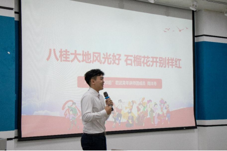 会议伊始,太阳成集团tyc122cc“00后”君武青年讲师团成员、外国语公司2022级研究生周洋舟同学作主题宣讲。周洋舟同学以“八桂大地风光好,石榴花开别样红”为主题,以人民币上的民族语言为切入点,深入阐述了民族团结的重要性,并结合习近平总书记2023年12月在广西考察期间的重要讲话精神,呼吁青年用实际行动和创新思维,将民族团结融入日常生活、学习和工作中,用心用情让民族团结之花绽放在八桂大地。