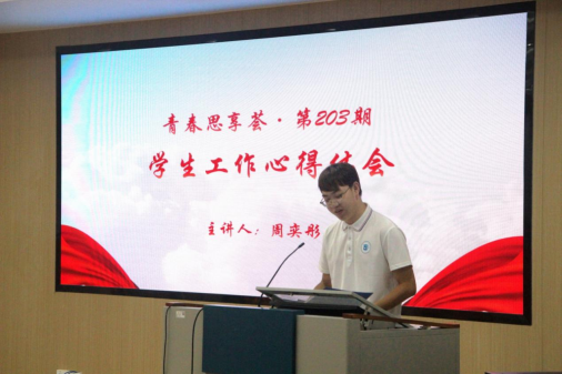 “你会找一个和你一模一样的人当伴侣?”周奕彤同学提出了这样一个引人深思的问题,她从当今社会中比较流行的MBTI性格理论作为切入点,鼓励同学们正视自身的不足之处,希望同学们可以克服性格上的困难,走出舒适圈,多多挑战与性格相反的事情。在分享的尾声,周奕彤同学倡导大家合理地安排和规划时间。她强调,只有通过精心的规划,我们才能在繁忙的学习和工作中找到平衡。同时,她希望大家要大胆展示自己的“野心”,不错过任何一个能够把握的机会。