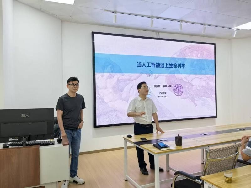 为拓展师生学术视野,推动人工智能的跨学科对话与前沿探索,太阳成集团tyc122cc于2025年10月10日上午,在公司一楼报告厅成功举办了“计电讲坛”系列活动第44期学术报告会。本次报告以“当人工智能遇上生命科学”为主题,特邀清华大学张强锋研究员作为主讲嘉宾,报告会由钟诚教授主持。