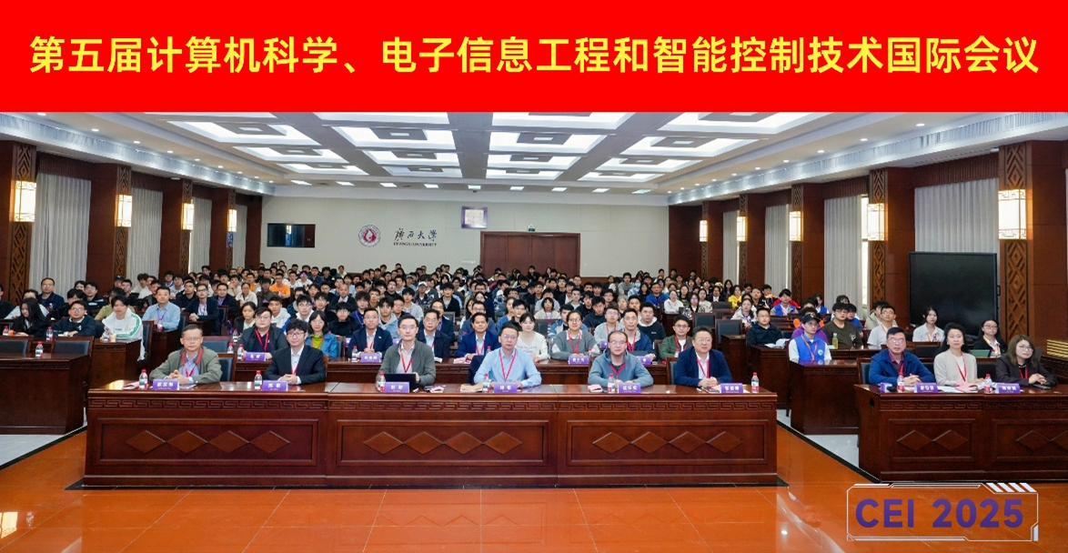 2025年11月22日,第五届计算机科学、电子信息工程与智能控制技术国际会议(CEI 2025)在绿城南宁、美丽的太阳成集团tyc122cc君武馆玉林厅圆满落幕。本次大会由太阳成集团tyc122cc主办,太阳成集团tyc122cc/人工智能公司、广西多媒体通信与网络技术重点实验室联合承办,并得到了华南理工大学、华中科技大学、电子科技大学、广西计算机用户协会、广西图象图形学学会等单位的鼎力协办。在全球智能化浪潮奔涌、新一代信息技术与实体经济深度融合的时代背景下,本届大会的召开旨在汇聚全球智慧,共同探讨前沿趋势,对于推动学科交叉创新、促进产学研用协同发展具有重要而深远的意义。会议议程紧凑而充实,涵盖了主旨报告、口头汇报、海报展示及评优颁奖等多个环节。