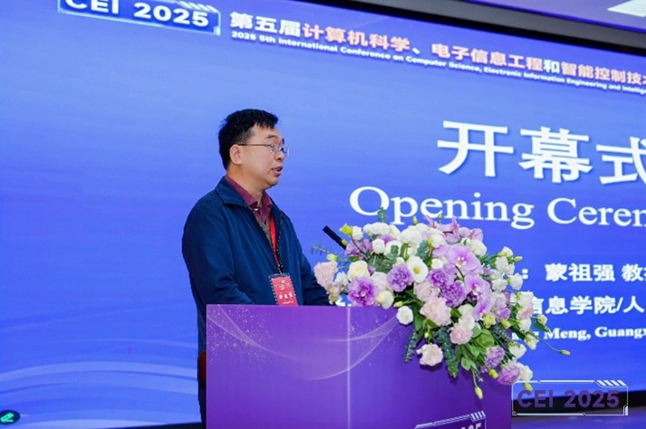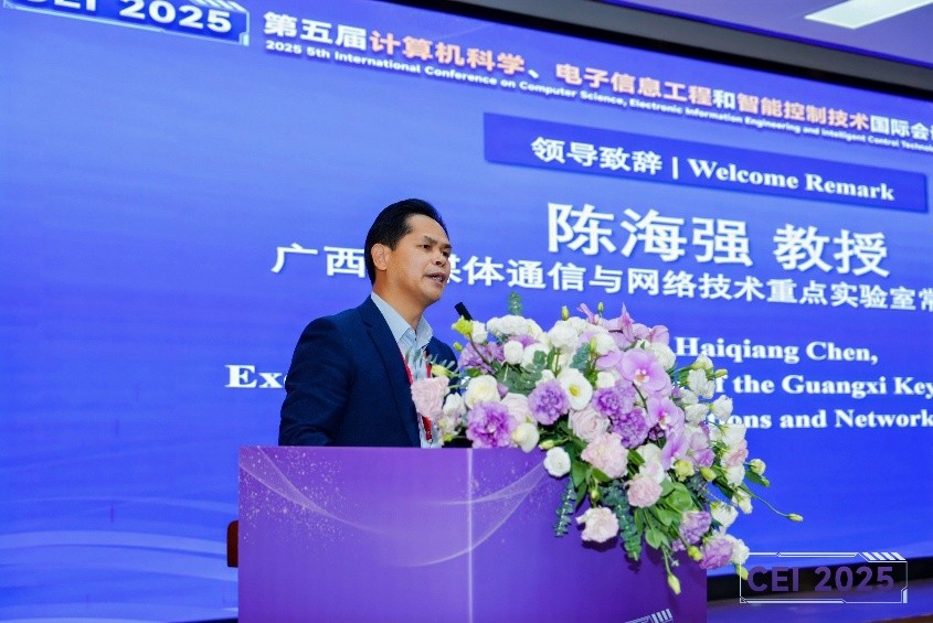 随后,程序委员会主席、广西多媒体通信与网络技术重点实验室常务副主任陈海强教授在致辞中阐述了CEI系列会议在促进学科交叉融合、激发创新思维方面的重要意义,并预祝大会取得丰硕成果!