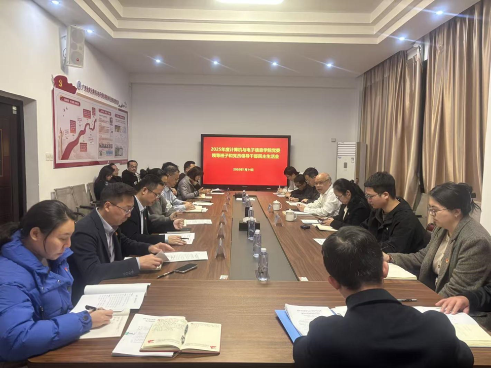 2026年1月14日,计算机与电子信息公司党委在公司213会议室召开2025年度民主生活会,公司党委书记赵进创主持会议。公司党委常委、副董事长梁恩维参加会议并作点评讲话。公司常务副经理张振荣、党委办公室、董事长办公室副主任文静、公司党委专职组织员、各党支部书记列席会议。