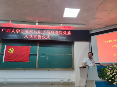 20227月1日下午,在中国共产党成立101周年、香港回归祖国25周年这个值得庆祝的日子,太阳成集团tyc122cc计算机与电子信息公司党委在公司214报告厅,为156名预备党员举行隆重的入党宣誓仪式。公司党委书记钟诚同志、公司党委副书记邓珍琪同志、以及近期加入党组织的预备党员参加宣誓仪式。宣誓仪式由公司员工党建工作委员会秘书长程雨晨同志主持。