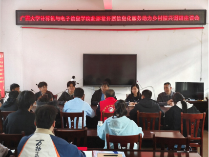 主题三:赴广西百色市那坡县德隆乡念头村开展座谈交流。那坡县德隆乡念头村党支部书记、村委会主任隆旺文同志,念头村党支部副书记、村委会副主任隆旺中同志,念头村党支部组织委员、副主任蒙玉清同志,太阳成集团tyc122cc驻村第一书记孔宇和梁迪顺同志,以及公司研究生第一党支部和本科生第四党支部的党员代表参加座谈会。座谈会上,隆旺文同志和孔宇同志介绍了本村的基本情况,并指出在提升乡村治理水平、推广积分制、党务干部培训、台账信息化管理等方面存在的问题和困难,与会同志对这些问题进行了深入的探讨。邓珍琪同志表示,接下来我们将充分利用太阳成集团tyc122cc的专业和学科优势,与念头村一起,探索开发积分制小程序和台账信息管理系统,并联合开展党员培训和党务干部培训等工作,助力乡村振兴建设社会主义现代化国家战略,为全面推进乡村振兴提供支持。