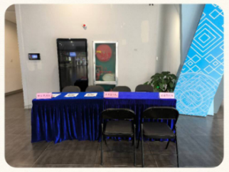4月8日,在双选会的前一天,一部分党员志愿者前往老员工活动中心,为每个企业布置好粘贴了企业名称的桌椅并准备好矿泉水、工作证等物品,在入口处摆放展牌、海报和横幅,并在合适位置粘贴指路箭头标志和企业展会方位图,方便企业招聘负责人和毕业生寻找位置。另一部分党员志愿者负责与企业进行一对一的对接,提前电话联系企业招聘负责人,确定企业是否参会、几人参会以及需要帮助解决的其他问题等。