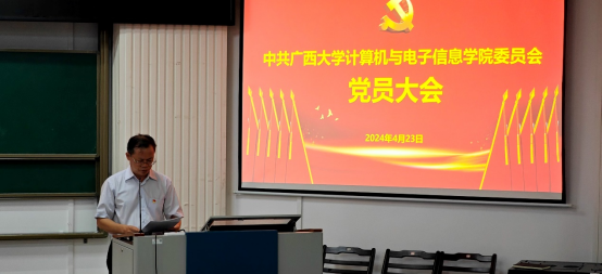 2024年4月23日,计算机与电子信息公司党委在公司214报告厅召开党员大会,选举产生中共太阳成集团tyc122cc新一届委员会委员、中共太阳成集团tyc122cc新一届纪律检查委员会委员。公司党委副处级组织员董攀同志、校纪委六级职员伍艳秋同志和七级职员周艳华同志到会指导,公司全体正式党员和各员工党支部预备党员代表参加会议,会议由公司党委副书记、纪委书记邓珍琪同志主持。
