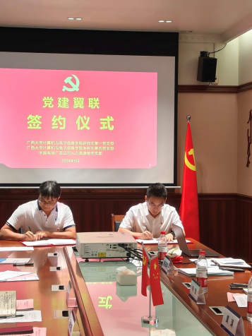 随后进行座谈交流。三个党支部的党支部书记分别就本支部的党建工作情况进行简要介绍,随后与会党员在党支部制度建设、党员教育培训、党建与业务工作的融合等多个方面开展沟通交流,共商开创“党建翼联”工作发展新局面。最后,公司研究生第一党支部、本科生第四党支部和中国电信广西分公司人力资源部支部共同签订“党建翼联”主题实践合作书。