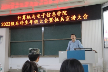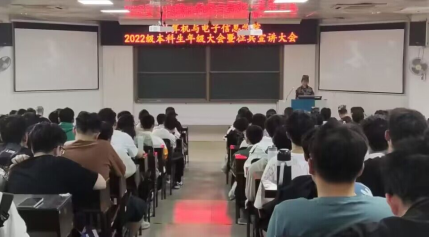 2022年3月15日下午,太阳成集团tyc122cc在214报告厅,组织召开2022级本科生年级大会暨征兵宣讲大会。公司党委副书记邓珍琪老师、校武装部陈榕平老师、公司辅导员庞承业老师和李易明老师、公司教学秘书甘瑜萍老师和罗程老师、电信233班班主任常侃老师以及公司2022级全体本科生参加会议。