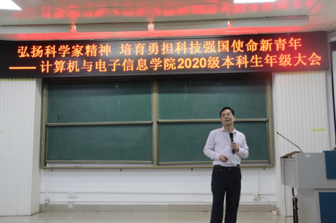 最后,公司党委书记钟诚教授作科学家精神宣讲,他分享了中国科公司院士、首届国家级教学名师陈国良教授的科研育人精神、为师之道,鼓励同学们要德智体美劳全面发展,心存高远、志在四方、服务国家和人民,要保持艰苦朴素的作风、努力学习、积极工作、勇担科技强国使命,为建设创新型国家贡献青春力量。
