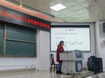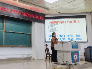 为加强公司兼职辅导员队伍建设,明确工作职责,提高管理服务工作实效,202212月2日下午,214报告厅,召开2022-2023学年兼职辅导员工作培训会议。公司全体专职和兼职辅导员参加会议。