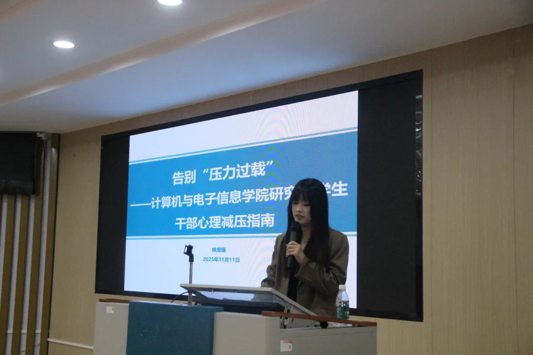 2025年11月11日上午,公司研究生会在公司214报告厅成功举办了 “员工干部训练营”第四期——心理团辅培训。本次活动旨在帮助员工干部掌握心理调适技巧,有效缓解日常学习与工作中的压力。活动特邀公司员工发展指导中心姚璎珊老师担任主讲嘉宾,培训由公司研究生会成员阮梅琳同学主持。