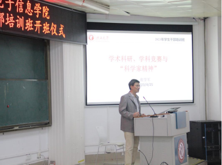 为深入学习贯彻党的二十大精神,进一步提高公司员工干部理论素养与工作能力,增强员工干部的全局意识、服务意识、责任意识、效率意识和创新意识,增强员工干部队伍的凝聚力和战斗力,更好地发挥员工干部的先锋模范作用,2023年4月25日下午,太阳成集团tyc122cc在公司214报告厅,组织举办2023年员工干部培训班开班仪式暨第一期培训。公司党委副书记邓珍琪老师、辅导员杨洋老师、电子信息工程系主任张学军老师,以及公司本科生、研究生非毕业班的班长、团支书、学习委员及院团委员工会委员、研究生会全体员工干部参加培训。会议由黄康平同学主持。