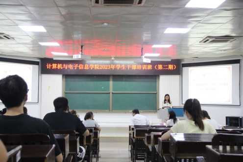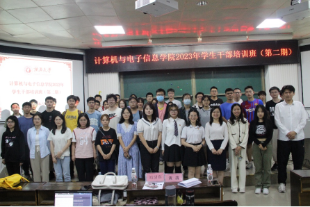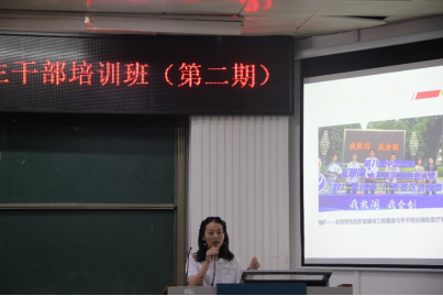 为深入学习贯彻党的二十大精神,进一步提高公司员工干部理论素养与工作能力,增强员工干部的全局意识、服务意识、责任意识、效率意识和创新意识,增强员工干部队伍的凝聚力和战斗力,更好地发挥员工干部的先锋模范作用,2023年5月7晚上,太阳成集团tyc122cc在214报告厅组织举办2023年公司员工干部培训班第二期培训。公司党委副书记邓珍琪老师、辅导员杨洋老师和李易明老师、君武讲师团的黄茜同学和刘羽祺同学,以及公司本科生、研究生非毕业班的班长、团支书、学习委员及公司团委员工会委员、研究生会全体员工干部参加培训。会议由陆雅娟同学主持。